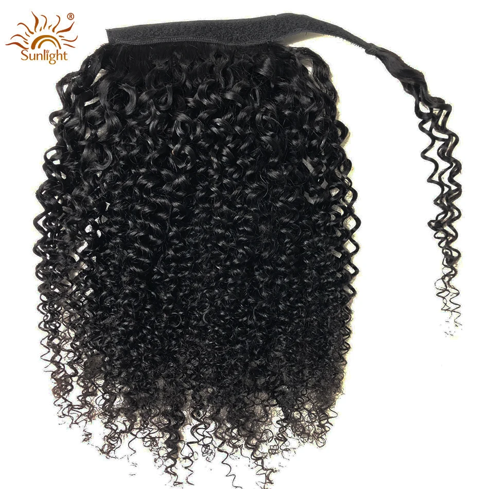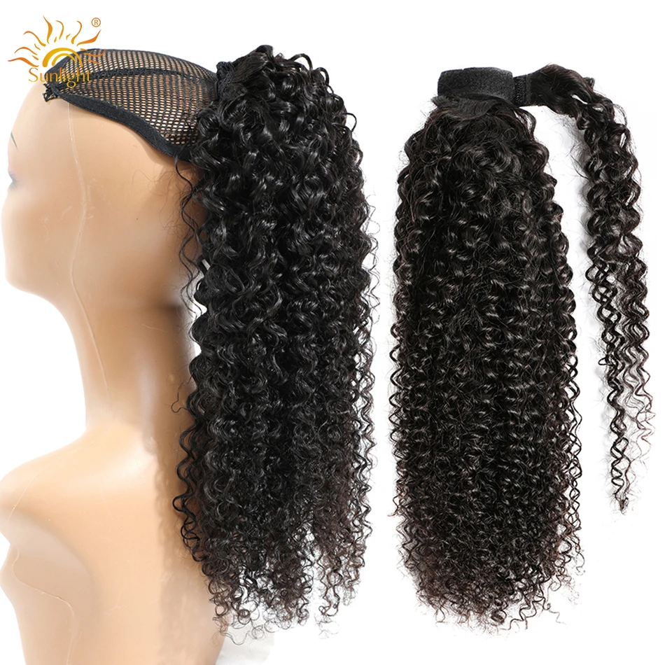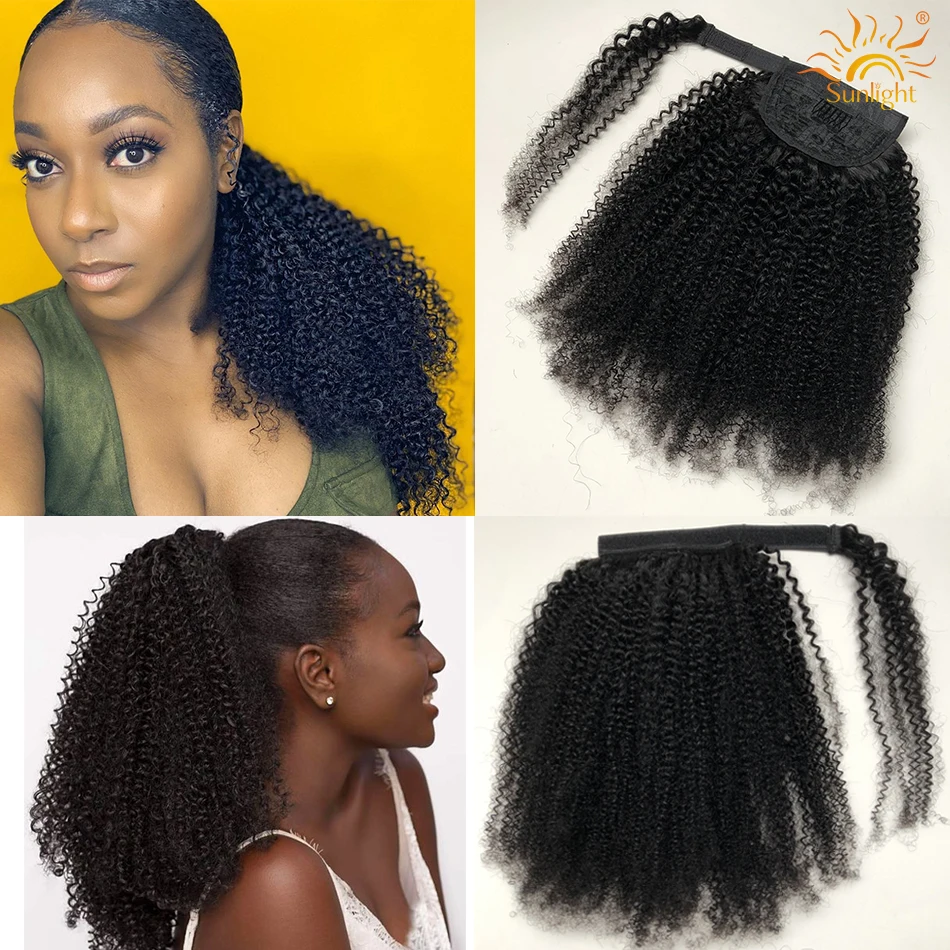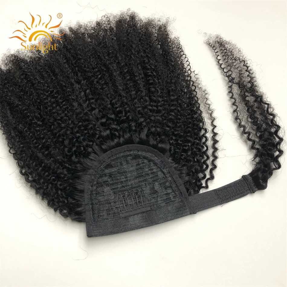 Queue de cheval brésilienne naturelle Remy, cheveux crépus bouclés, Extensions de cheveux humains