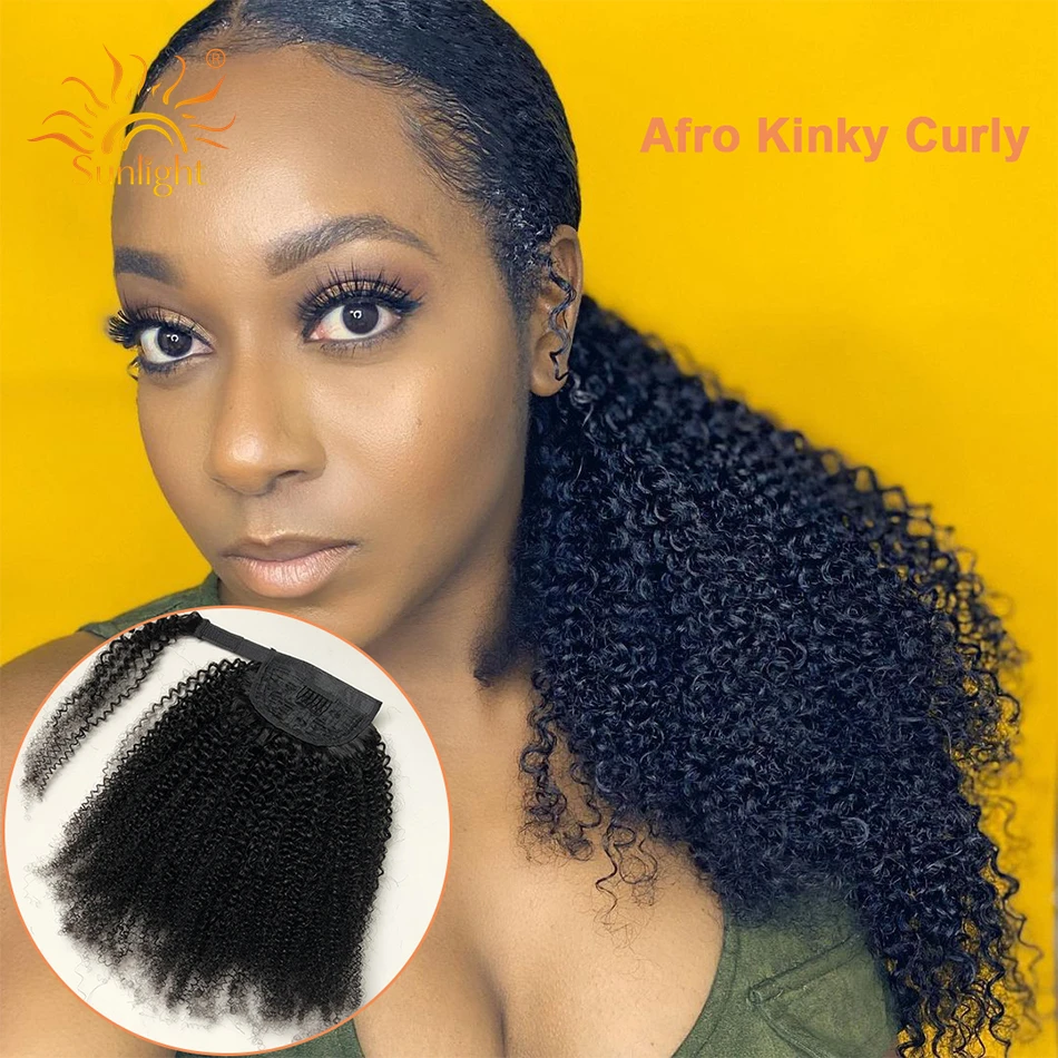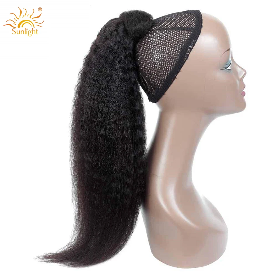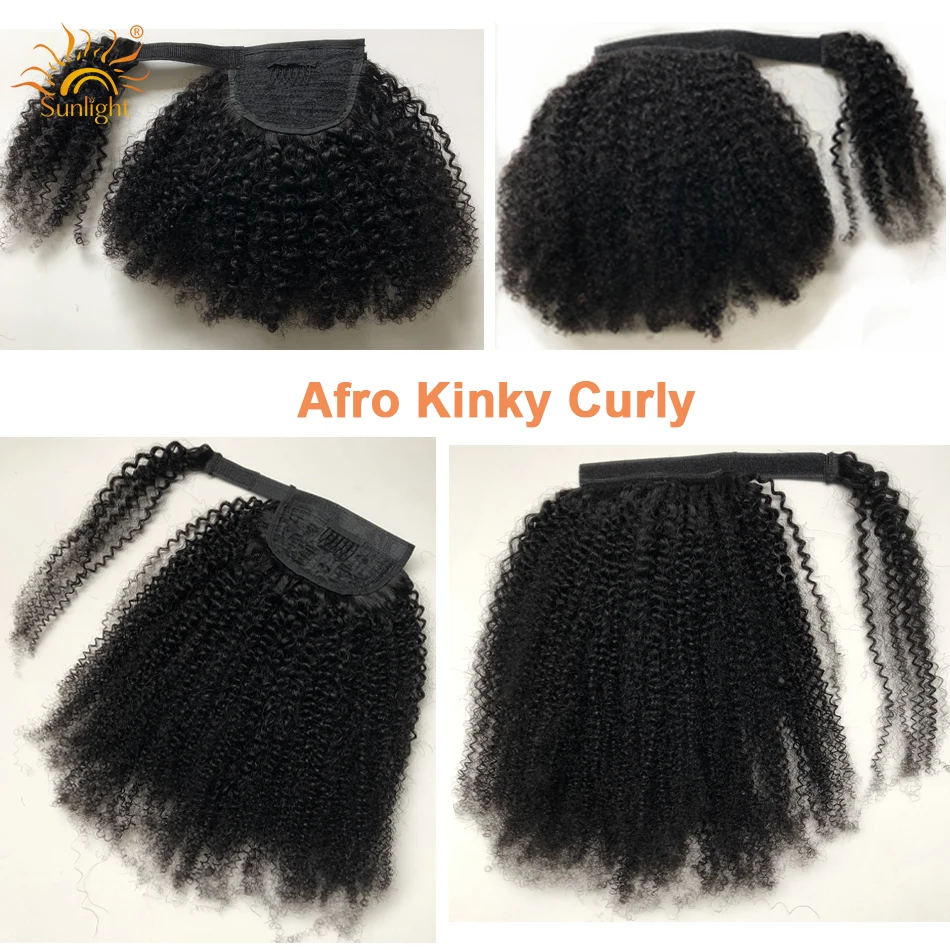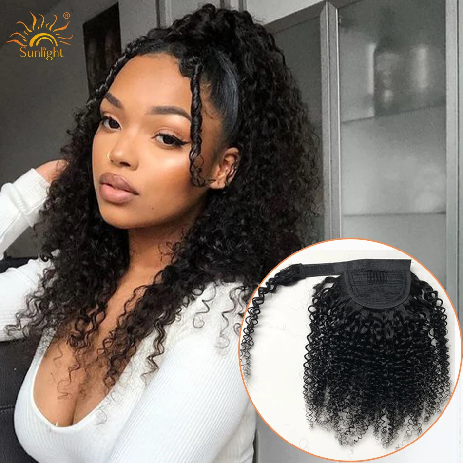 Queue de cheval brésilienne naturelle Remy, cheveux crépus bouclés, Extensions de cheveux humains
