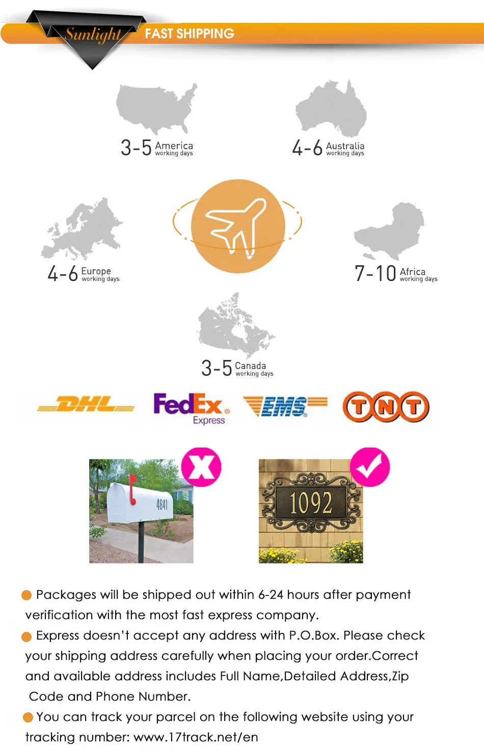 • Delivery Method: Aliexpress Standard Shipping or Express FedEx/USPS/DHL/DPEX/TNT